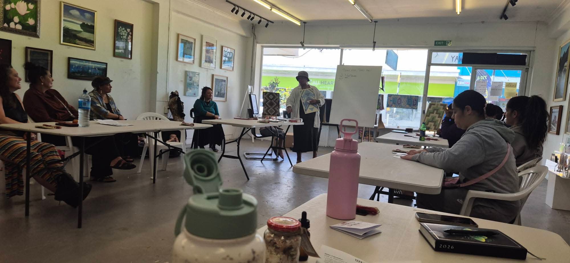 Feb 4 - Tukutuku workshop in the gallery, facilitated by Awhina Murupaenga.